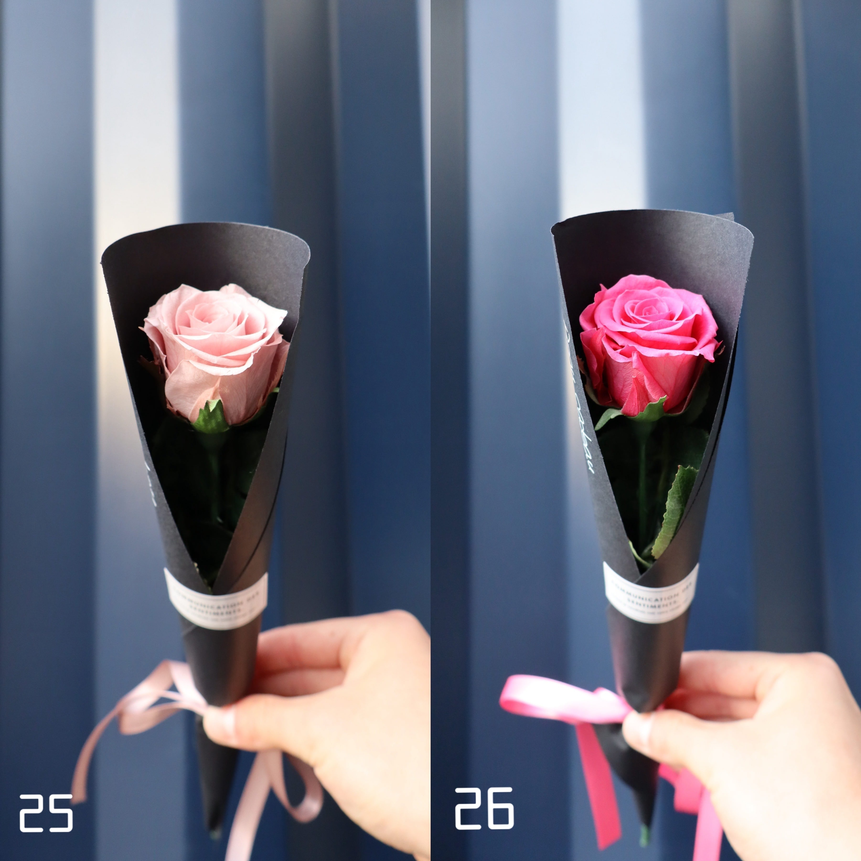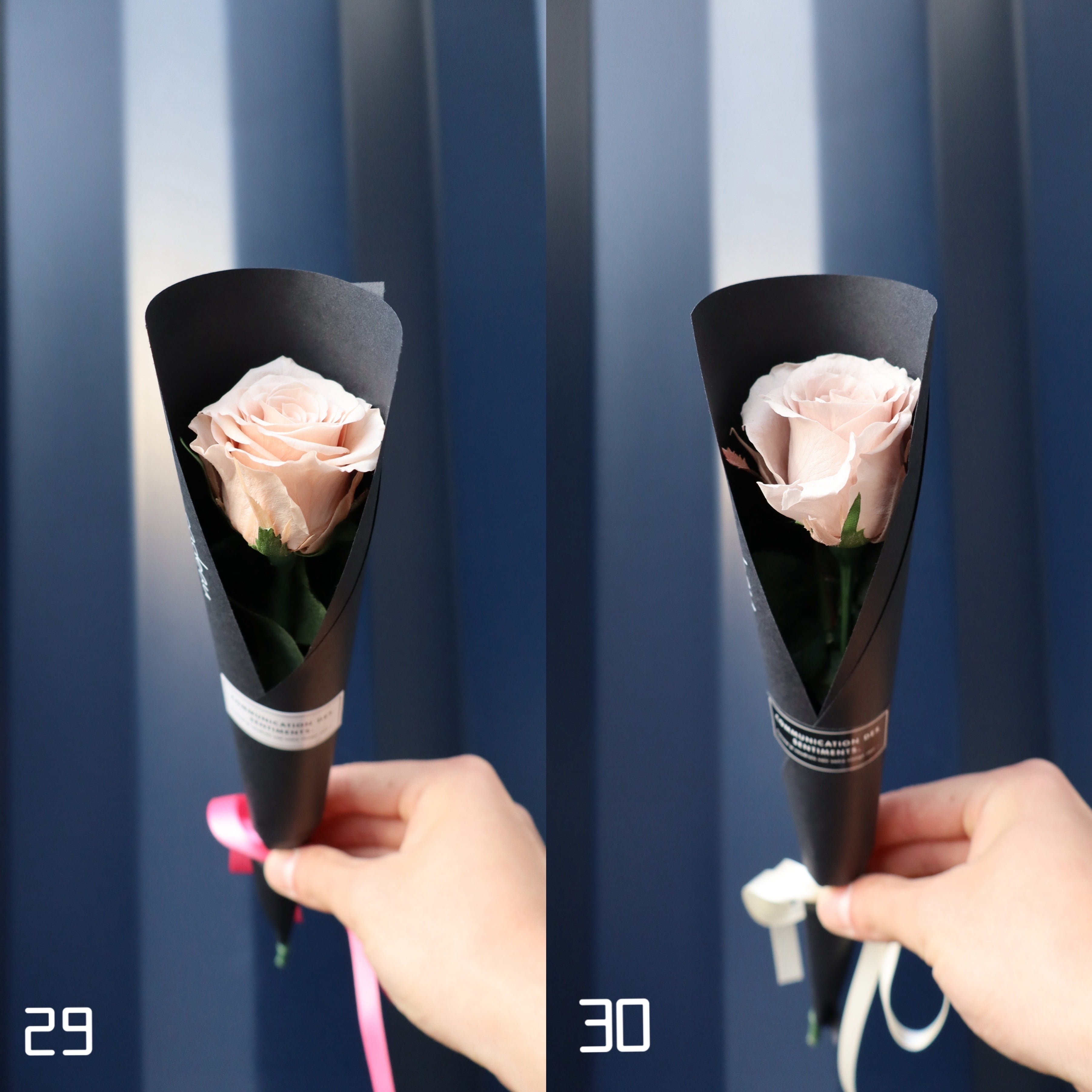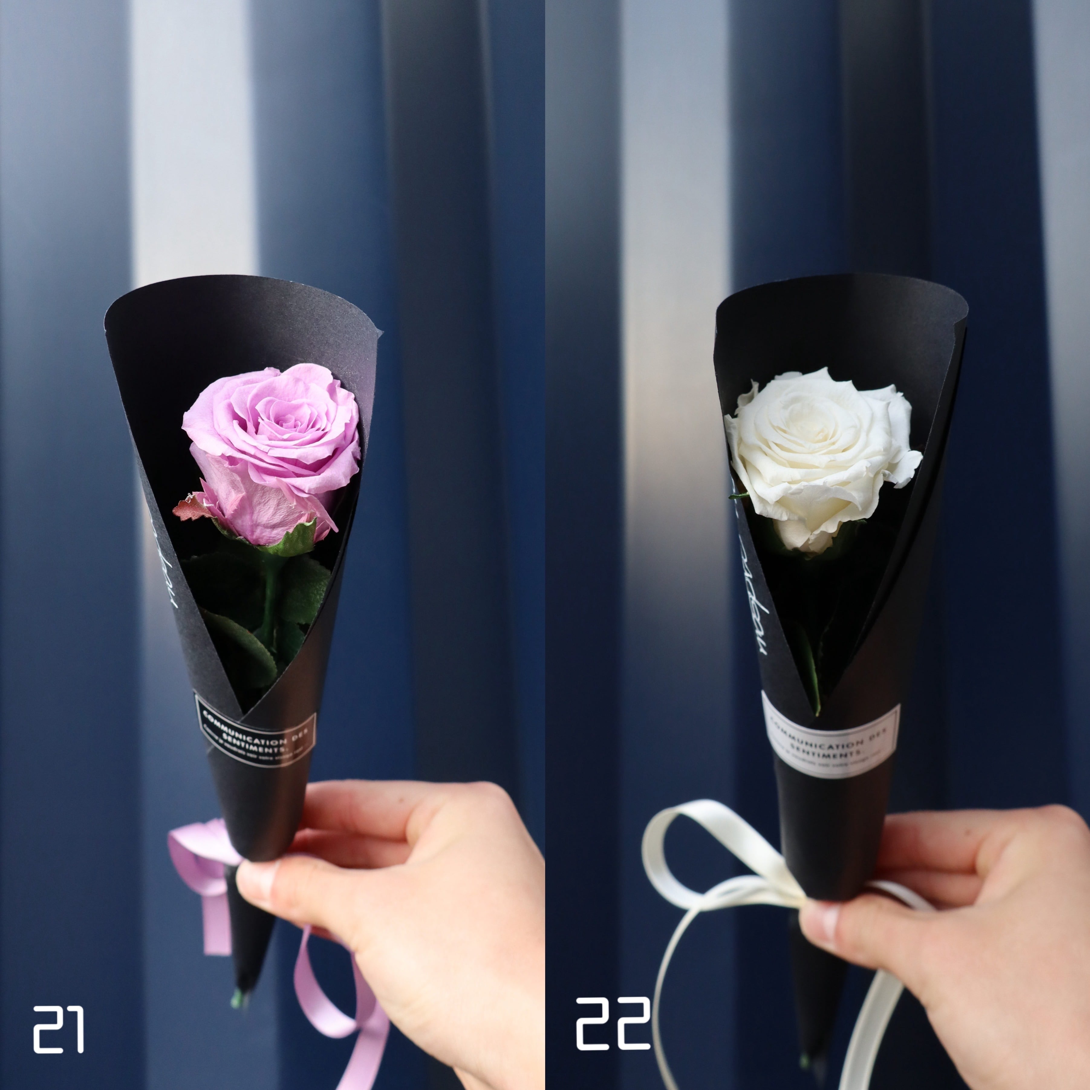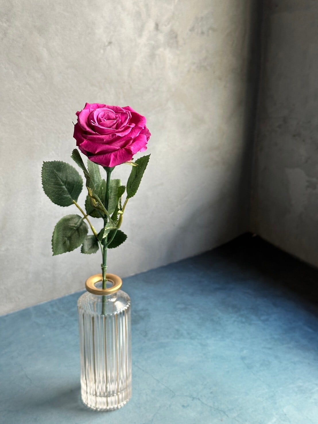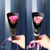 プレゼントした時にずっと思い出を形として残して欲しいと思い、プリザーブドフラワーで1本のバラを作成しました。