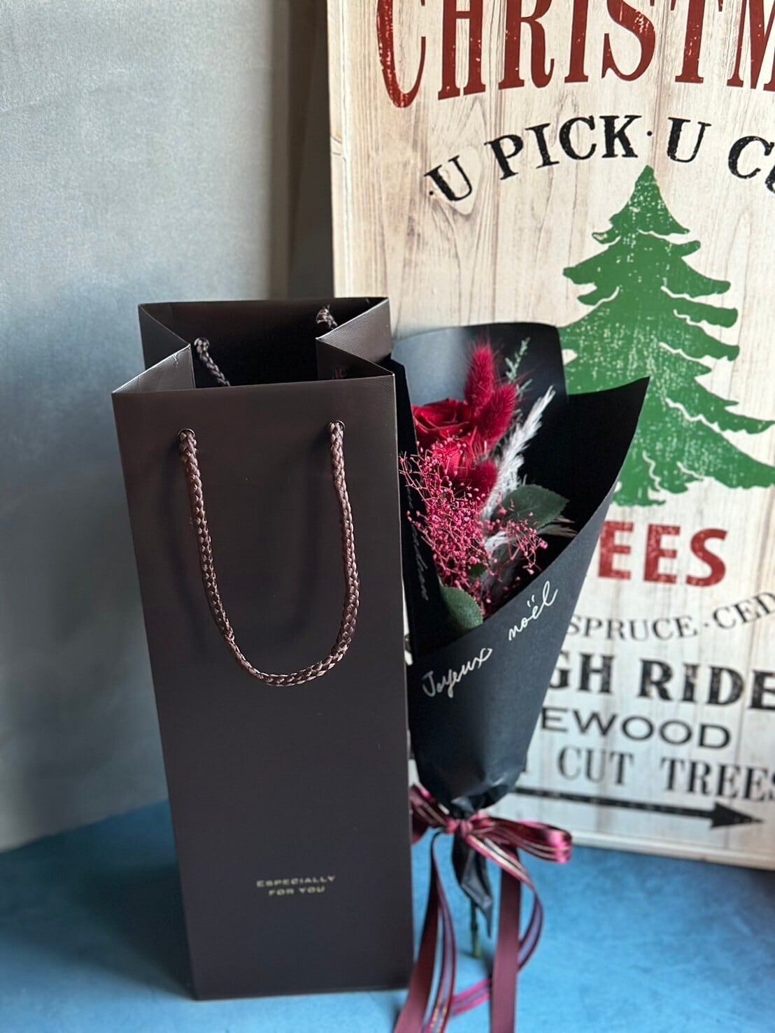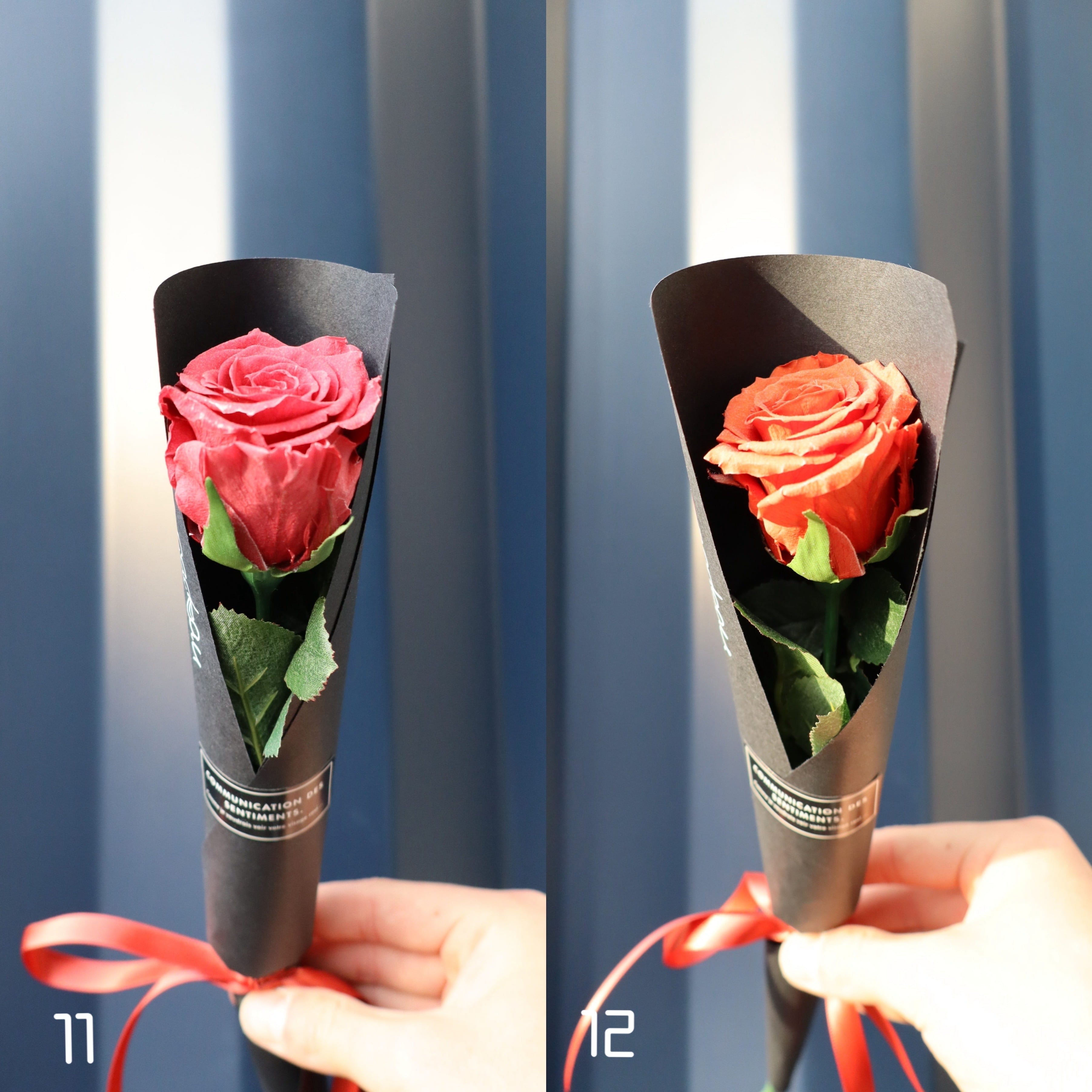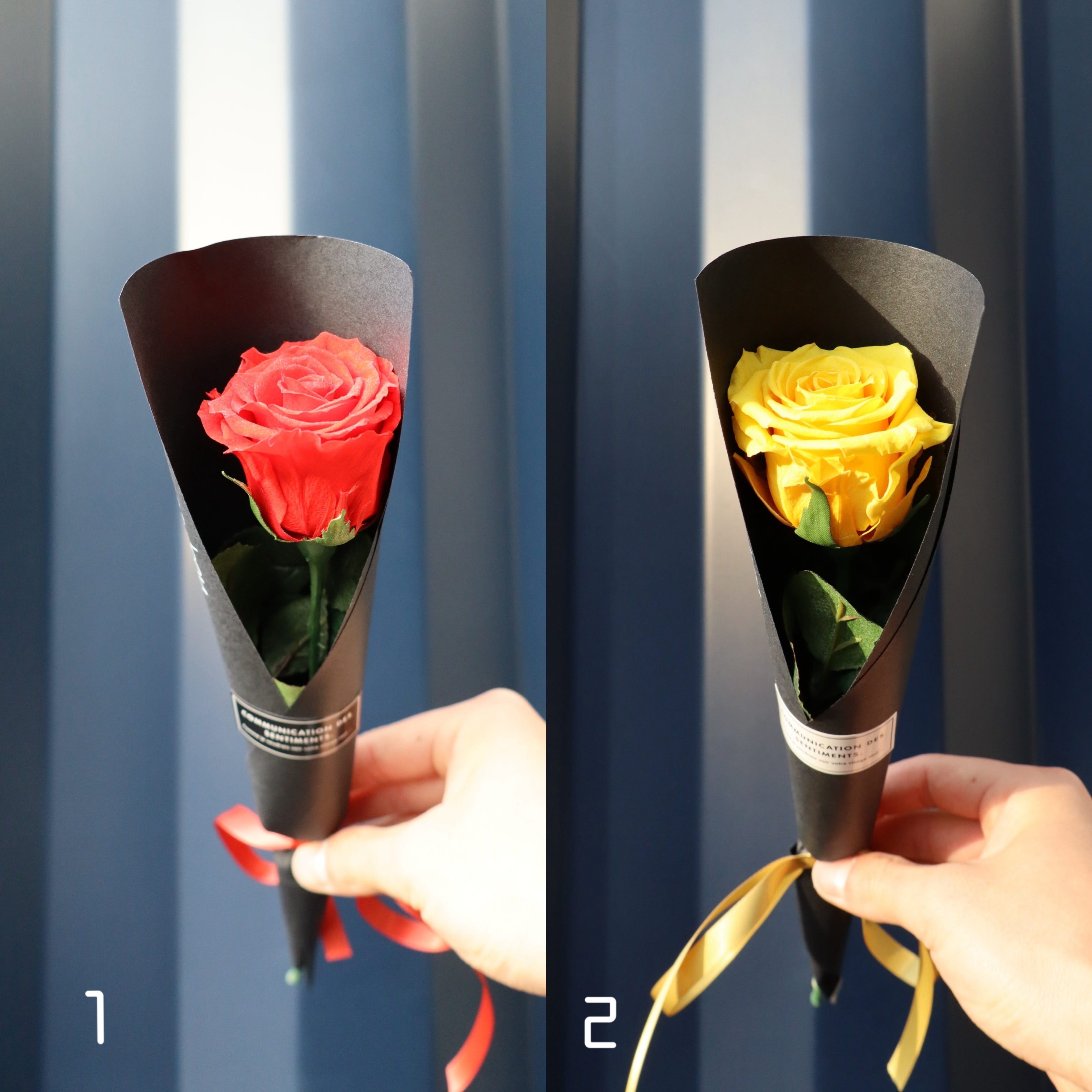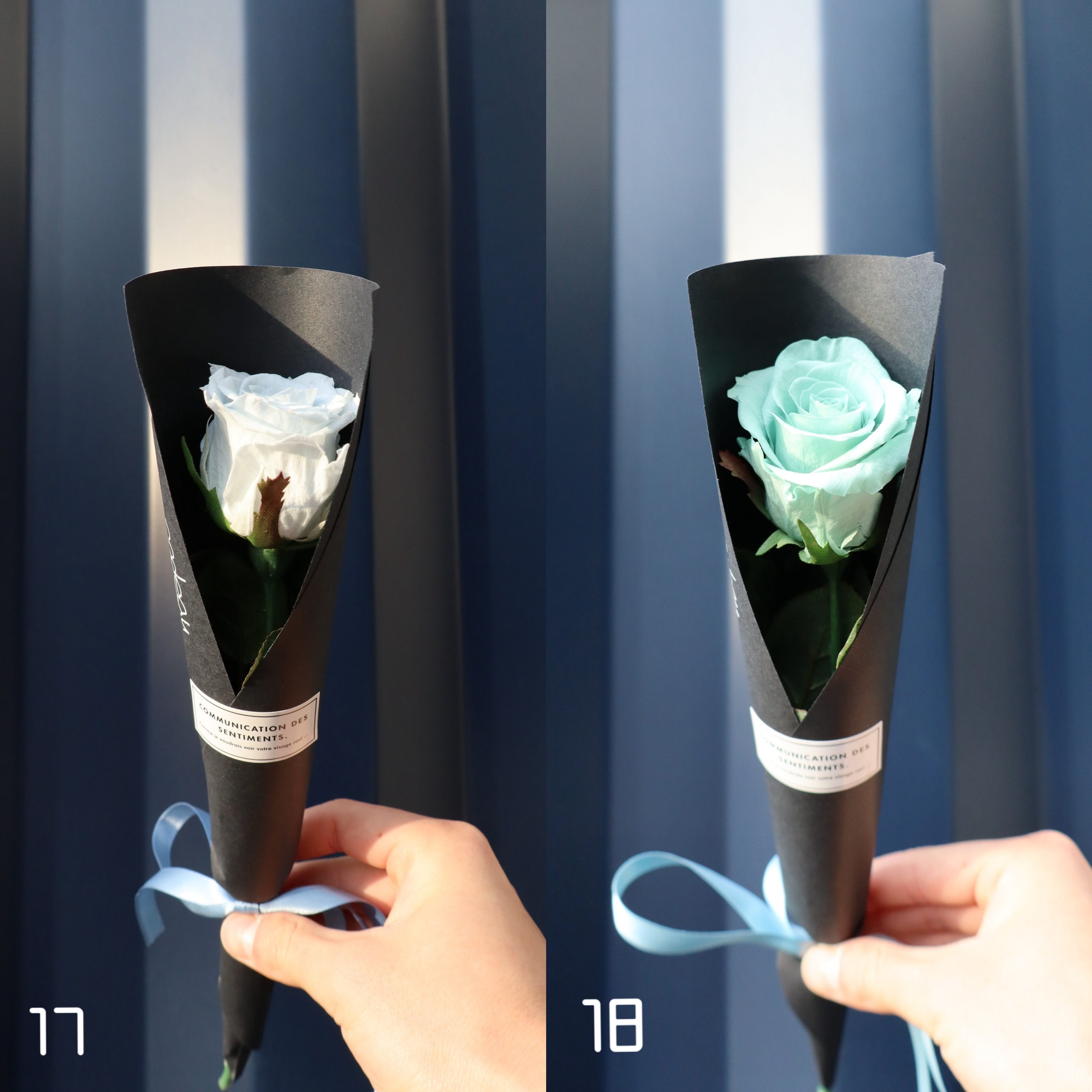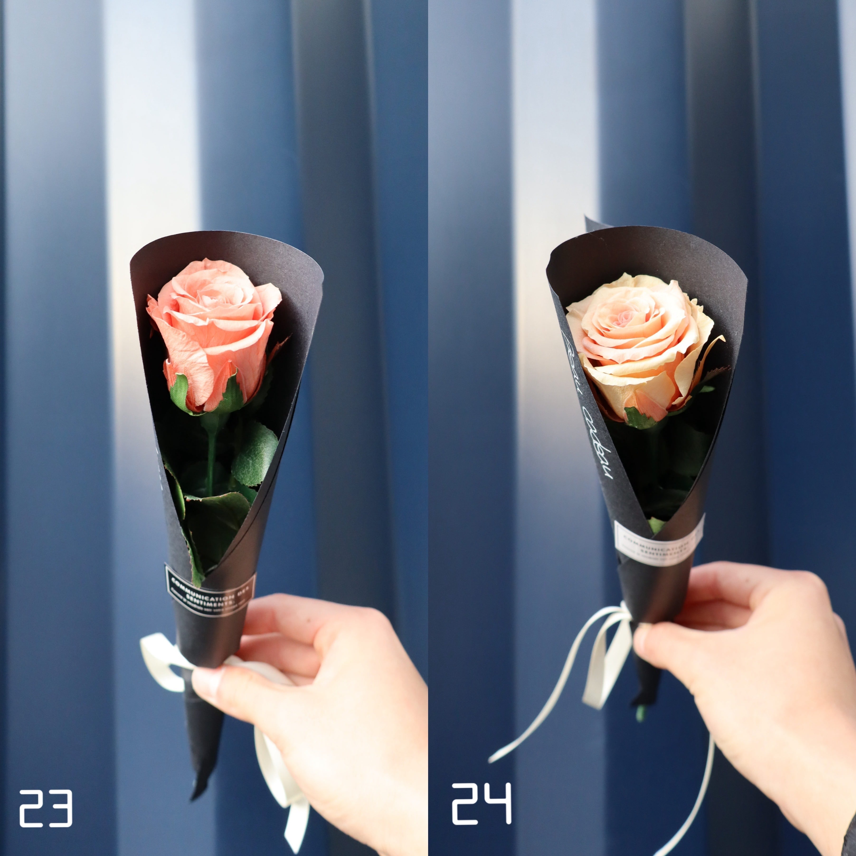 プレゼントした時にずっと思い出を形として残して欲しいと思い、プリザーブドフラワーで1本のバラを作成しました。